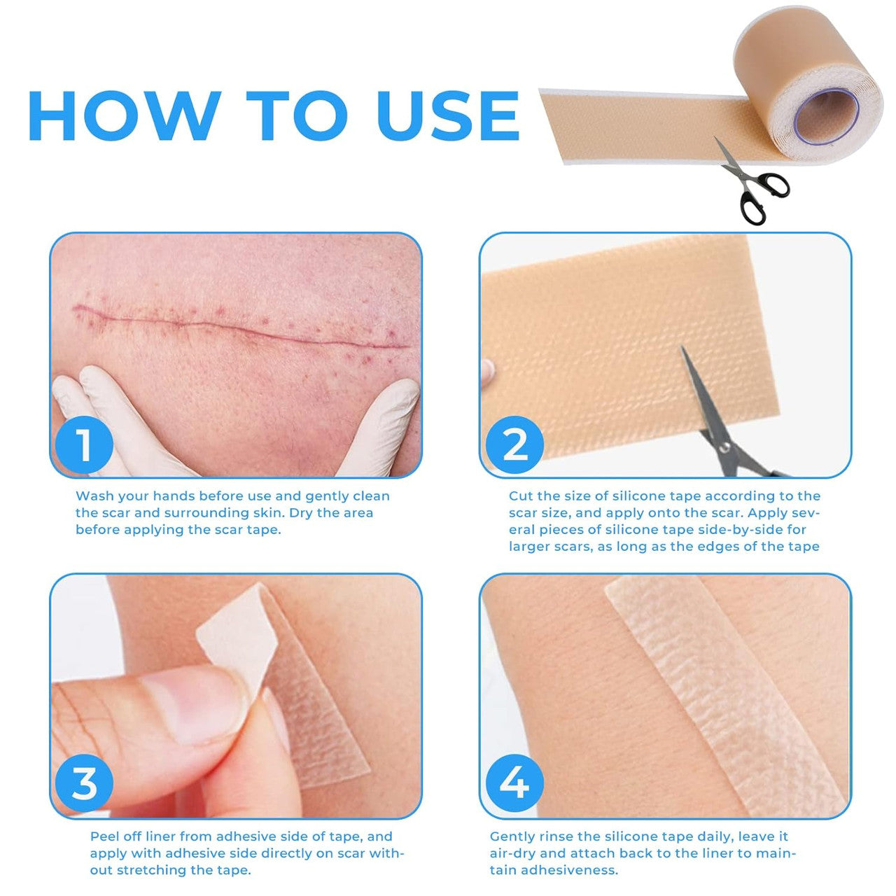 - Cut a strip to fit the scar and apply with gentle pressure.